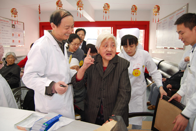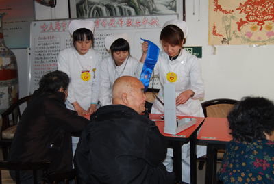 本次活动由院团委副书记张成基组织带队,我院第四团总支部分团员青年以及耳鼻咽喉头颈外科病院副院长郑国玺教授、石季副教授、吴彩琴护士长、杨慧副护士长、主管护师刘海琴和学生党总支许明章老师及部分学生党员等参加了义诊活动。郑国玺教授为老人们及工作人员们讲授了“打鼾与睡眠”系列健康知识。郑教授将讲课内容制作成幻灯片,以图片、表格等多样化的形式图文并茂进行里详细讲解,以便老年人更容易理解。对老人们提出的关于睡眠方面的各种问题郑国玺教授也耐心地为老人们一一解答。同时,在老年公寓住宿区设立了临时问诊台,为老人们进行健康检查。石季副教授用温暖人心的微笑、细致入微地检查、耐心温和地解答对待每一位老人,护士们为老人测量血压。对于行动不便的老人们,吴彩琴护士长和杨慧副护士长带领几名护士逐一进入房间内为老人们检查身体。针对老人们较为普遍的睡眠常见问题医护人员给老年公寓的领导也提出了建议和治疗方案。