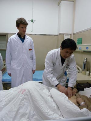 Timothy Robson是英国牛津大学医学院学生会主席,此次实习将持续三周时间,在未来的学习交流过程中,我院感染科党双锁主任将对他进行带教指导,Timothy Robson将和我们的医学生一起参加临床科室的医疗、教学、科研活动,切实提高临床操作技能,开拓学术视野。在与Timothy Robson的交谈中,我了解到,他之所以放弃了去复旦大学医学院实习的机会,而慎重选择来我校学习是基于交大二院在国际上的知名度,以及他的老师David Alan Warrell 教授、Chris Conlon教授、董涛教授对我院的熟悉与了解,使他对我院感染病学有极为浓厚的兴趣。党主任及其团队的热情接待和有序安排,让他很感满意,虽然身处不一样的国家、学院,但是在学术及文化的交流过程中使他开阔了国际学术视野,认识了中国医学的博大精深。Timothy Robson对我院的医疗、教学、科研水平、软硬件设施、实习环境等表示赞赏,因此Timothy Robson十分感谢交大二院为他提供了这么难得的一次机会。