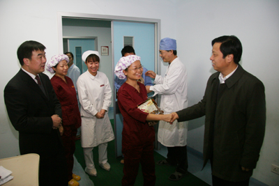 红梅迎雪放,玉兔踏春来。2月2日农历除夕上午,我院党政领导韦俊荣、贺西京、李宗芳、李文典、高亚、刘原、巩守平、谢丹及工会主席黎一鸣带领医院党政职能科室负责人,第一时间将新春祝福送到节日值班人员身边。慰问组分四个小组,分别到工作在第一线的临床医技科室、党政后勤科室和班组,向他们送去全院教职工崇高的敬意和节日的问候,祝他们节日愉快、全家幸福,并对其家属们给予医院工作的大力支持表示最衷心的感谢。(张军科文 刘铨 张雷 兰璐 赵珊图)