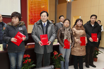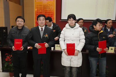韦俊荣书记宣读获奖科技人员名单,由到会领导分别为我院2010年度第三届“十大科技新星”、科研先进集体科室、科研工作进步奖科室、SCI论文发表作者、实现SCI零突破的科室和绩效评估前10名的受表彰人员颁奖并合影留念。