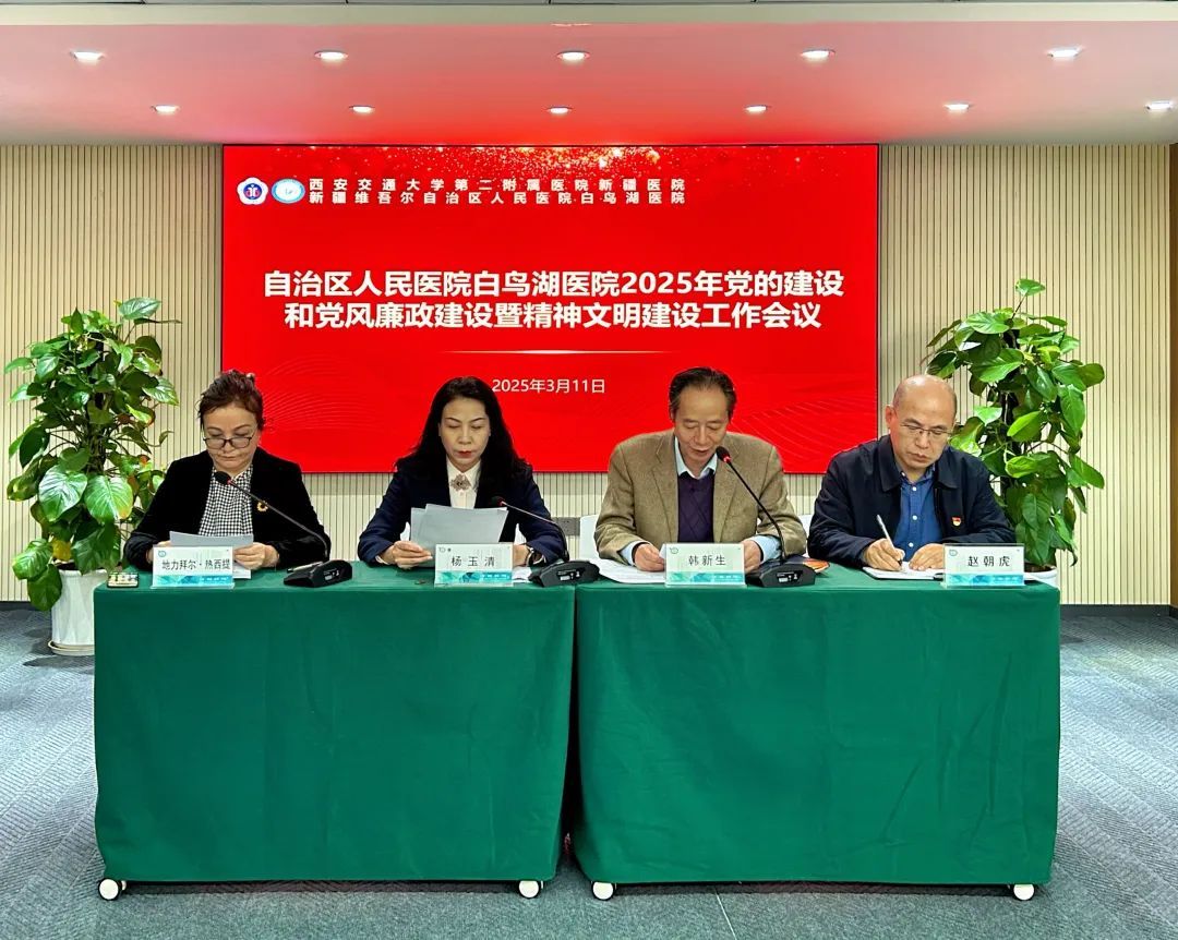3月11日,西安交通大学第二附属医院新疆医院(自治区人民医院白鸟湖医院)召开2025年党建和党风廉政建设暨精神文明建设工作会议,全面总结2024年党建和党风廉政建设工作,部署2025年工作任务。会议由医院党委委员、执行院长韩新生主持,院领导及全院党员参加会议。