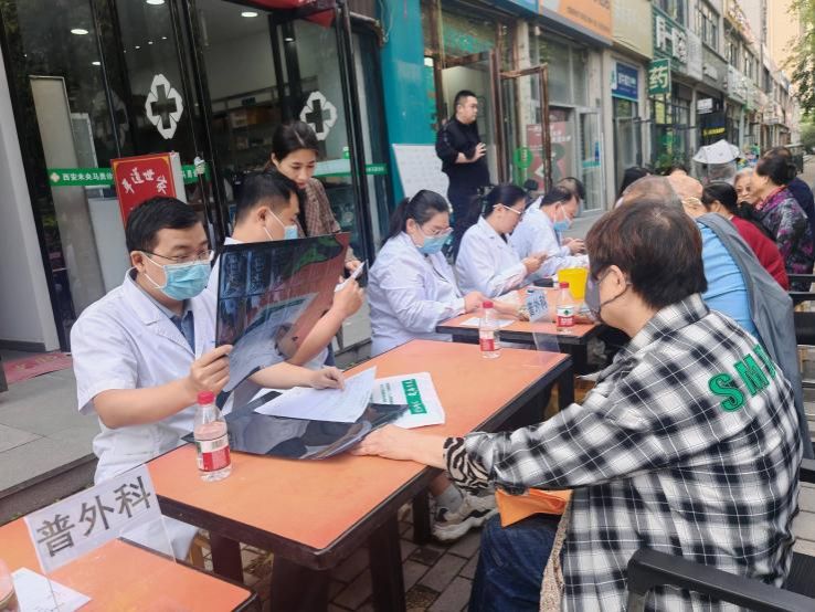 为响应医院“八八华诞践初心,‘1+N’行动惠民生”的主题活动精神,进一步丰富和深化党建强科行动,加强党支部建设,推动党建与业务深度融合,充分发挥党支部战斗堡垒作用和党员先锋模范作用,9月20日,由西安交通大学第二附属医院中医科和老年普通外科联合主办的大型公益义诊活动在西安市未央区谭家街道紫薇希望城社区举行。