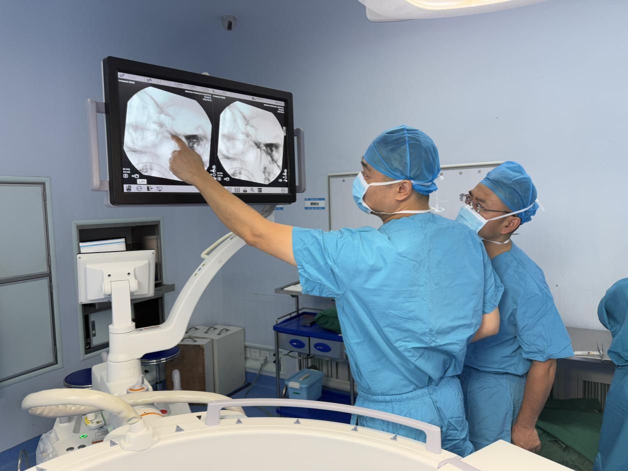 为不耽误李明的治疗,张熙教授特意调整帮扶行程,利用两个帮扶点之间的间隙,连夜赶回岷县。手术当天,他提前一小时抵达手术室,反复核对手术方案;手术过程中,他一边精准操控器械实施微球囊压迫术,一边手把手向当地医护人员传授操作要点,整个手术不到一小时便顺利完成。手术室外,李明的妻子攥着保温桶来回踱步,当护士告知“手术很成功,疼痛根源已经解决”时,她瞬间红了眼眶,哽咽着说:“终于能让他好好吃顿热饭、睡个安稳觉了!”