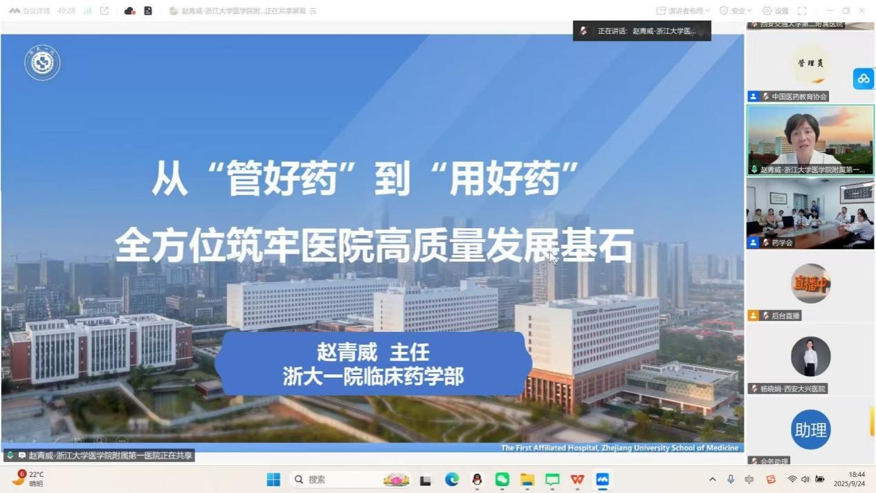 会议特邀浙江省药事质控中心主任、浙江大学医学院附属第一医院主任赵青威做了《从“管好药”到“用好药”全方位筑牢医院高质量发展基石》专题报告,赵主任系统阐释了从“管好药”到“用好药”的理念,为医院药学通过全流程质控与临床价值输出,全方位支撑医院高质量发展提供了兼具理论高度与实践价值的路径参考。药学部李亚药师以《以患者为中心:癌痛全程管理的多维度策略与实践探索》为主题,分享了我院临床药师参与癌痛管理的工作经验。