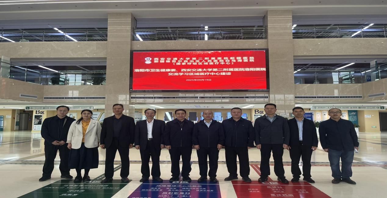 9月19日,洛阳市卫生健康委主任李金乐带领洛阳市中心医院党委书记闫新、市中心医院党委委员、副院长许小卫、西交大二附院洛阳医院执行院长王伟、洛阳市卫生健康委员会办公室主任李红磊、洛阳市中心医院机关党总支第六党支部书记董瑞强到访西安交通大学第二附属医院新疆医院。双方就国家区域医疗中心建设理念、发展模式、运营机制及学科建设、人才培养、科学研究等方面进行深入交流,参观了新疆医院咳喘管理中心、急诊和危重症医学科、临检中心等。
