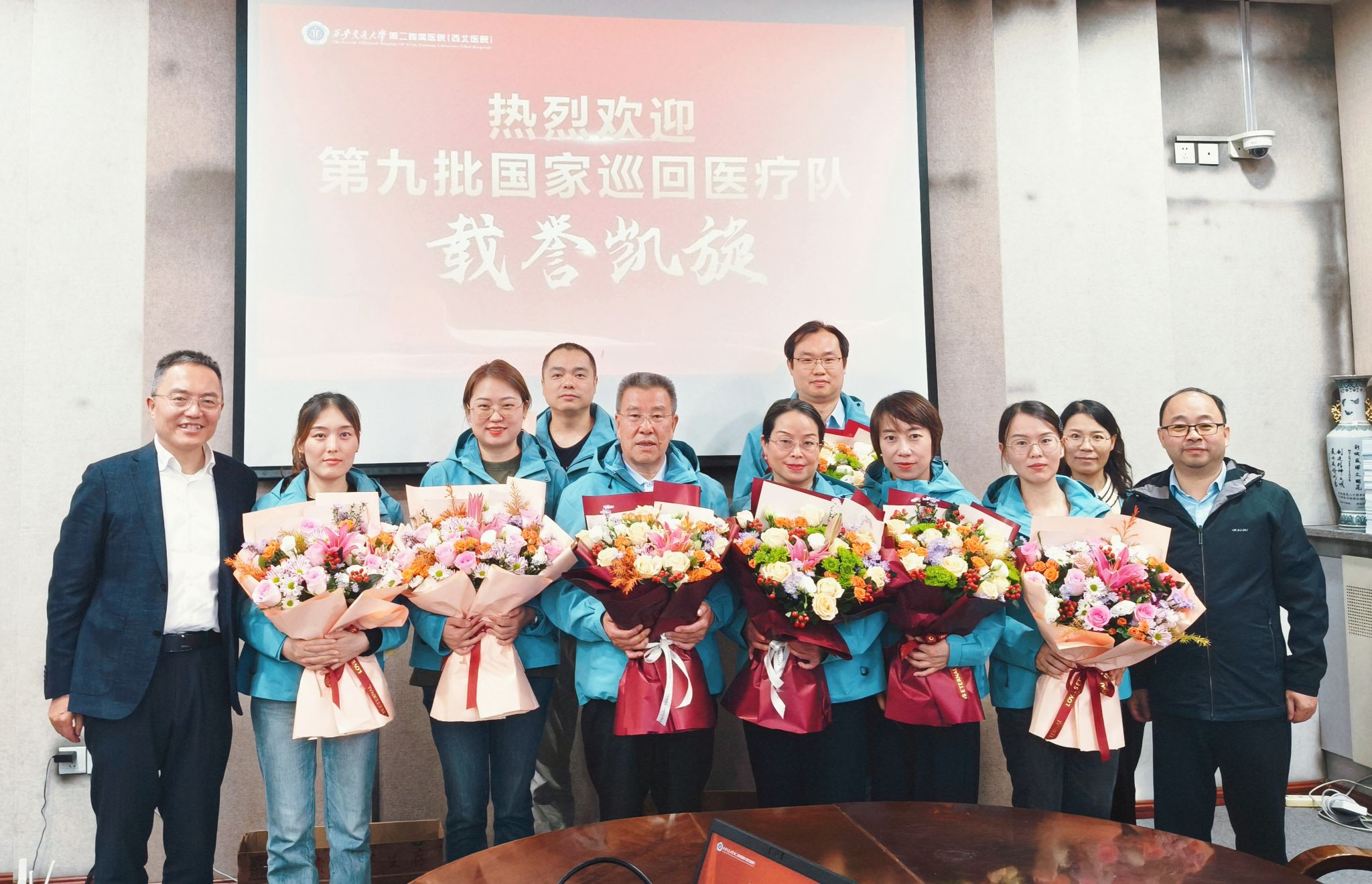 会议最后,刘明副院长代表院领导为每一位医疗队员送上鲜花,并合影留念。此次巡回医疗任务的圆满完成,不仅彰显了我院国家医疗队的专业实力与人文情怀,也为推动优质医疗资源下沉、促进区域医疗协同发展写下了务实而温暖的一笔。
