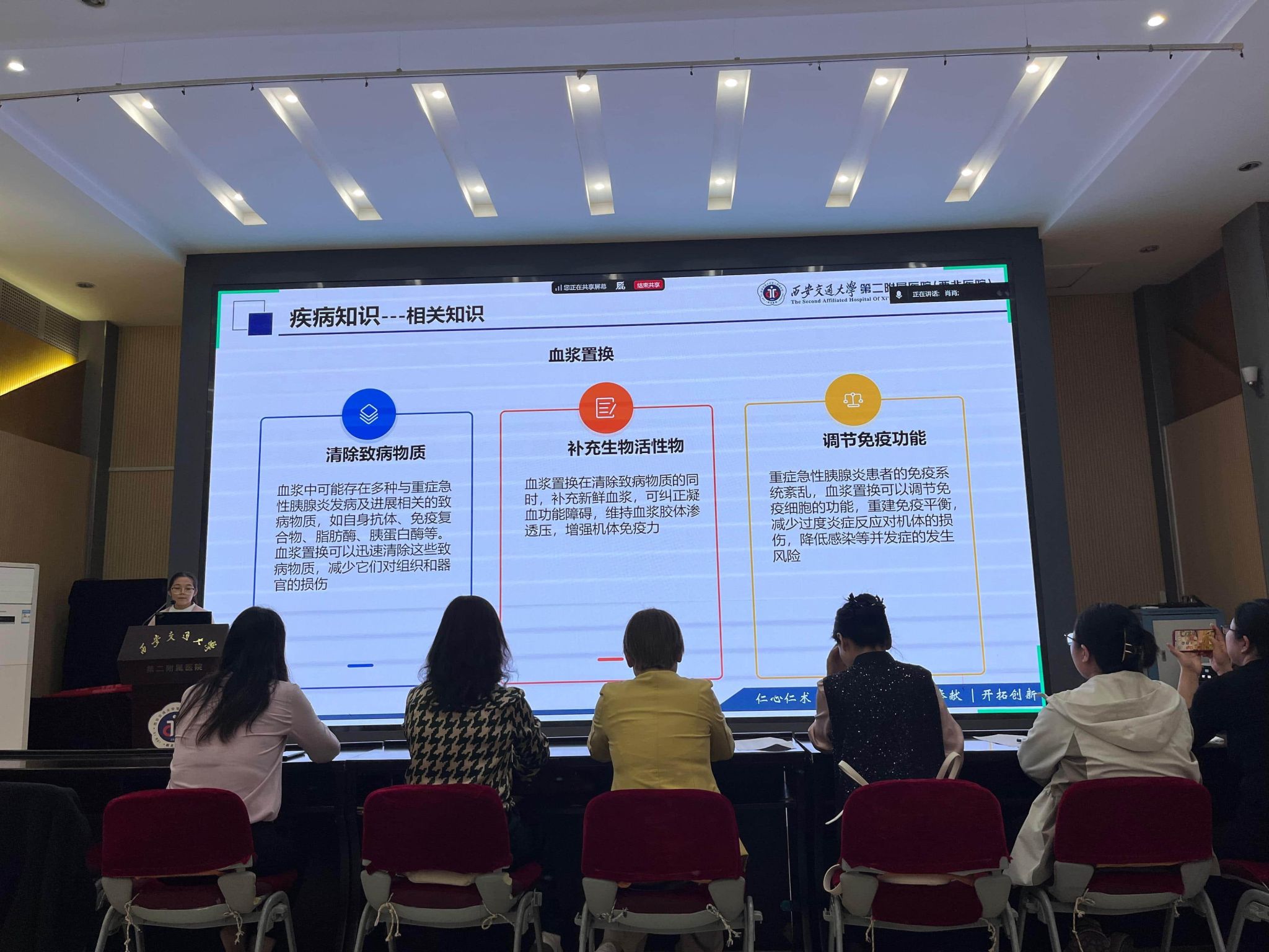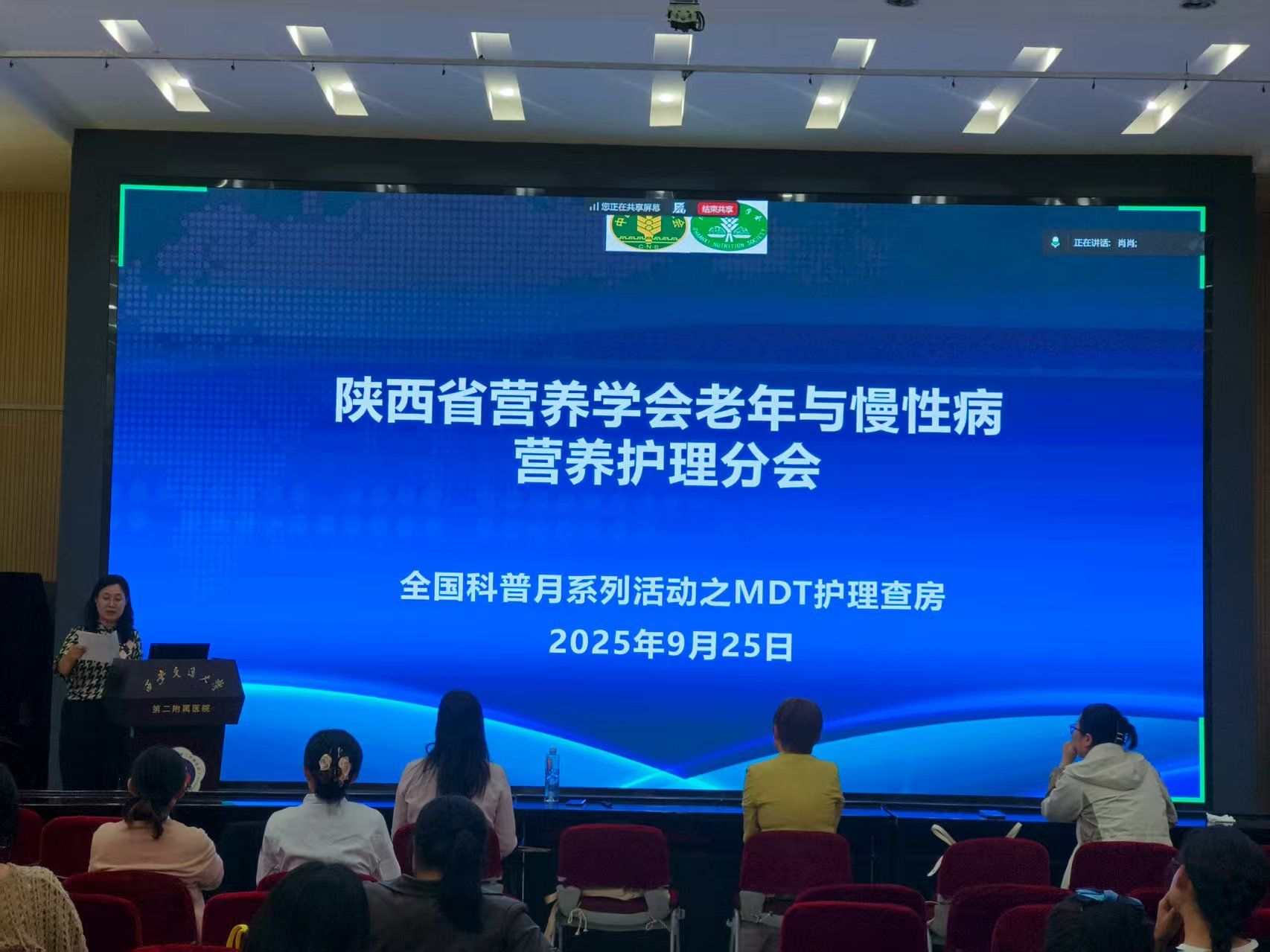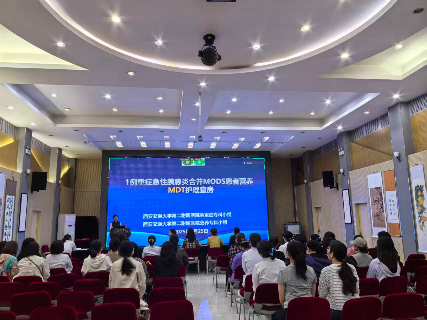 营养是疾病康复的“隐形基石”,科学的营养支持能为患者康复注入关键动力。为纪念抗战迁陕88周年,繁荣学术,进一步提高临床护理质量,全面了解患者的病情,为患者提供全面优质,全程个性化的护理服务,9月25日下午由陕西省老年与慢性病营养护理学会主办,西安交通大学第二附属医院重症医学科承办的“1例重症急性胰腺炎合并MODS患者营养MDT护理查房”在我院南院多功能厅进行。参加本次查房的有陕西省老年与慢性病营养护理学会赵小红主委、丁妮秘书长,消化科杨会护士长,陕西省营养护理学会的委员们、我院急重症专科小组联络员及院营养专科小组联络员线上线下近百人参加了此次查房。