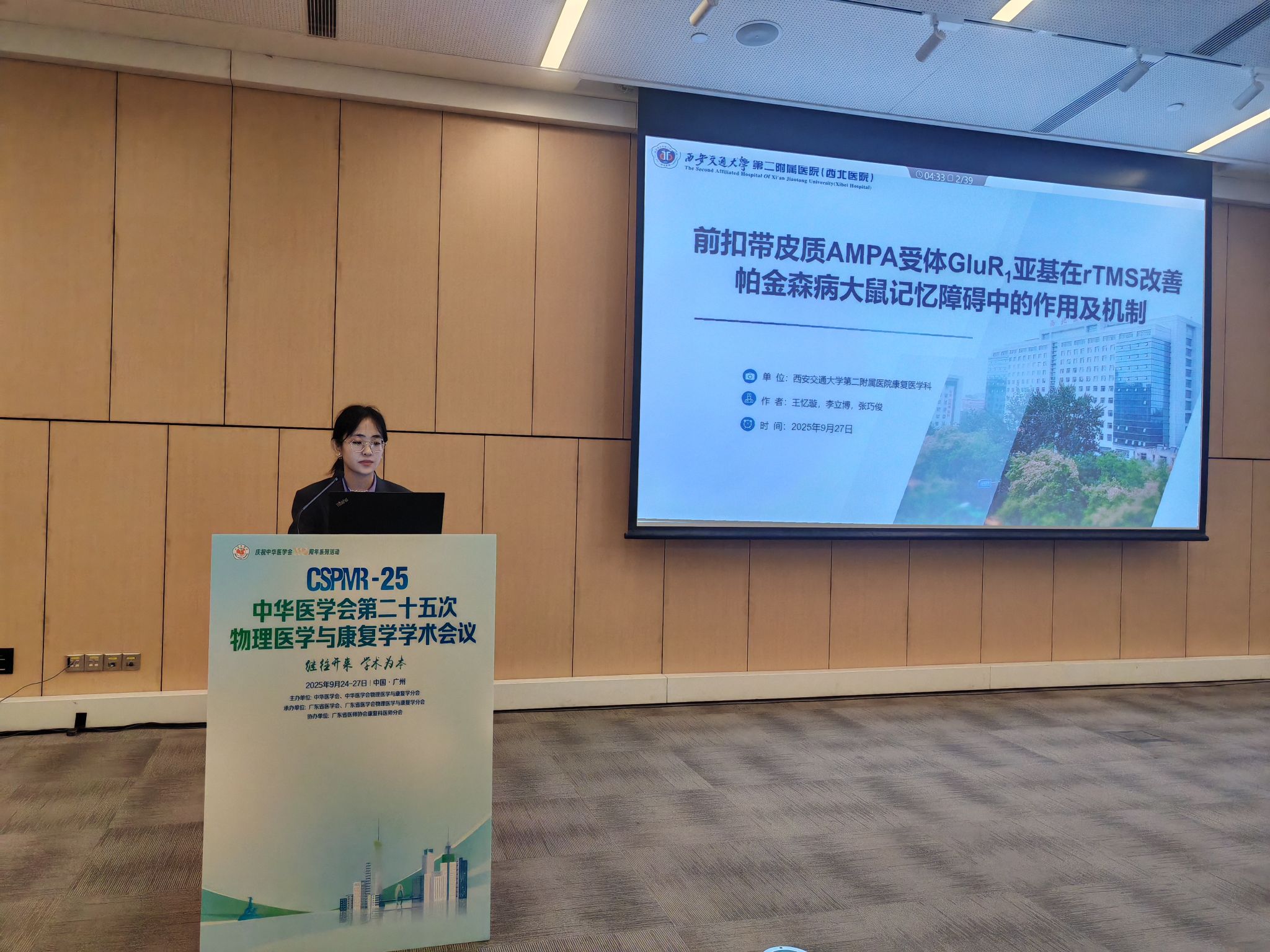 在神经疾病康复领域,科室的基础与临床研究同样亮点纷呈。王玲博士汇报了《长期cTBS 通过调控小脑-丘脑-纹状体环路缓解帕金森病模型大鼠的异动行为》,关注cTBS对异动行为的环路调控作用。王忆璇博士汇报了《前扣带皮质AMPA受体GluR1亚基在rTMS改善帕金森病大鼠记忆障碍中的作用及机制》,聚焦于rTMS改善记忆障碍的分子机制。