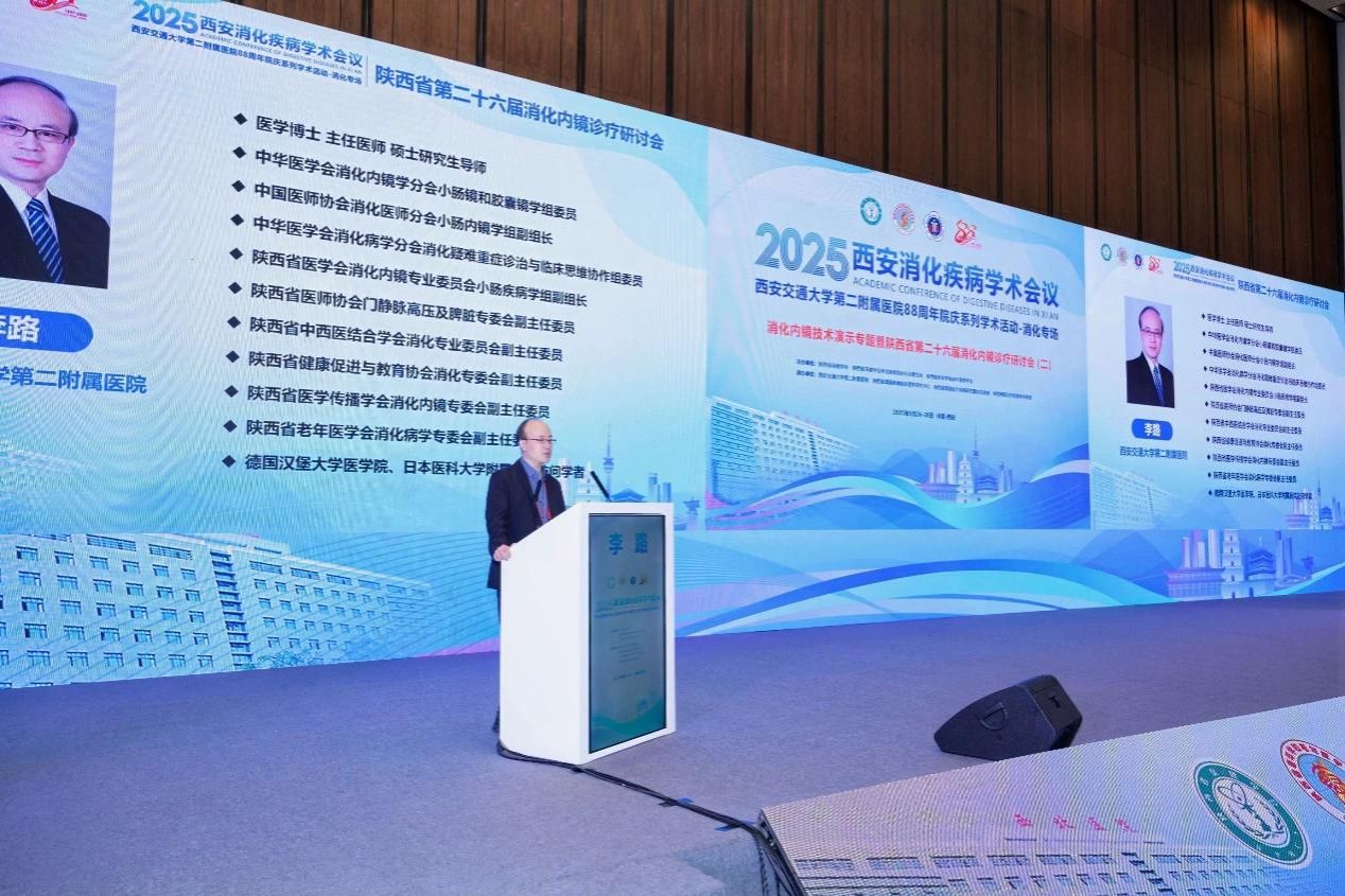 2025年9月26日至9月28日,由陕西省保健学会消化疾病防治专业委员会主办,我院消化内科、陕西省胃肠疾病临床医学研究中心、陕西省胃肠动力疾病研究重点实验室、陕西胃肠及肝胆胰专科联盟共同承办的“2025西安消化疾病学术会议”在西安国际会议中心举行。本次大会汇聚了来自全国各地以及本省消化、消化内镜及肝病等领域的332位知名专家进行专题讲座、会议主持和现场手术演示。同时还邀请了来自日本的9位知名国际消化病专家共同切磋交流。历时三天的大会共计900余人现场参会,线上累计直播点击率合计15.13万人次。