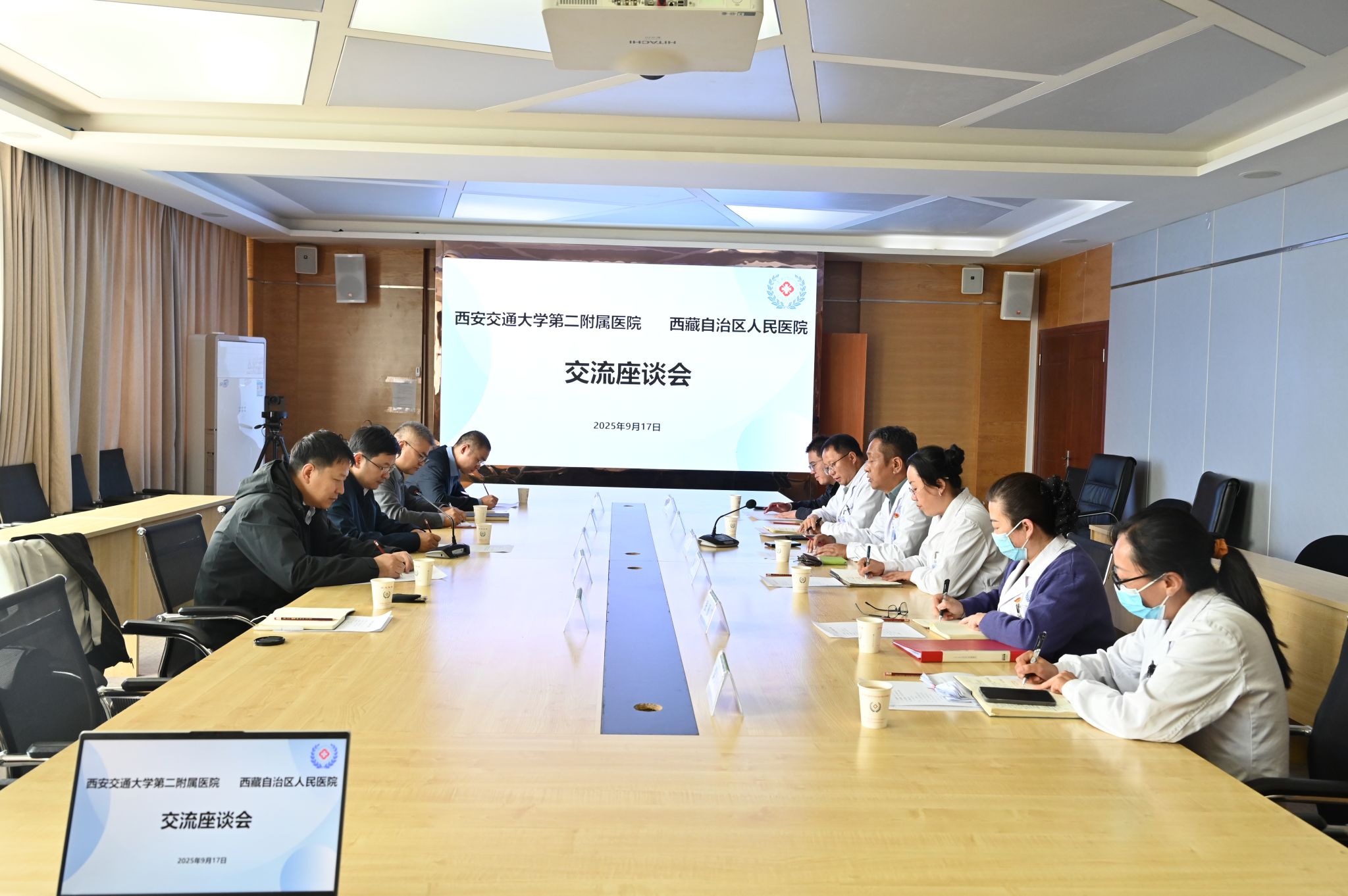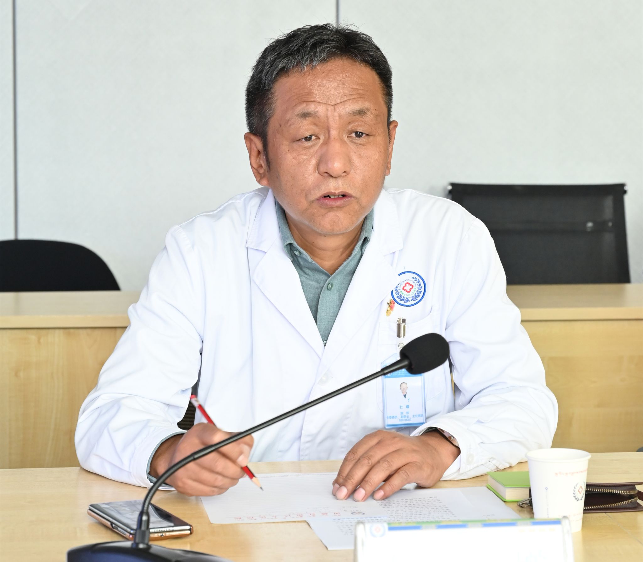 一直以来陕西(也包括我院)与西北、西南等省份联系紧密,援助活动深入、蓬勃开展。戴一副院长介绍了我院的基本情况及发展历史。他表示,希望结合拉萨作为陕西支援西藏阿里的重要枢纽节点的特殊地理区位,建立长效的合作交流机制,形成西部地区医疗合作交流的闭环;希望整合双方医院优势,结合西藏的高原特色和疾病谱,开展广泛的医疗管理、学科平台建设、科研教学项目等交流合作;希望加强自治区人民医院与阿里地区人民医院的紧密联系,通过医联体、远程诊疗等模式和技术手段建立绿色通道将更多的西藏本地的优质医疗资源辐射到阿里地区。