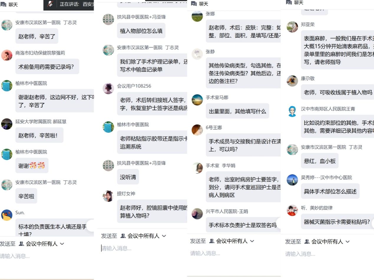线上参会人员纷纷表示,培训内容实用性强、指导意义突出,不仅加深了对麻醉危机处理流程的理解,也进一步规范了护理文书书写规范。陕西省手术室质量控制中心将继续发挥专业引领职责,促进陕西省手术室同质化,专业化,规范化发展。