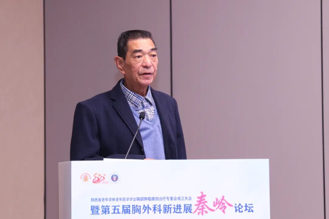 他表示,专委会成立后要深化专业协作,构建多学科诊疗新模式,推动技术普及与规范化操作,加强临床研究与学术创新,重视人文关怀与全程管理。通过全体委员的凝心聚力、精诚合作,开拓进取,不断提升我省老年胸部肿瘤微创诊疗的整体水平,为延长患者生命、提高生活质量、助力“健康陕西”、“健康中国”建设,作出我们应有的、坚实的贡献!