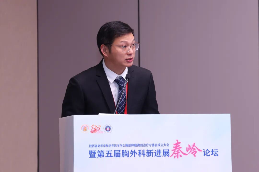 作为专委会筹备组成员,西安交通大学第二附属医院胸外科副主任张丹杰教授代表专委会筹备组首先介绍了胸部肿瘤微创治疗专业委员会的筹备情况。他感谢陕西省老年学和老年医学学会对专委会筹建工作的支持,并表示将积极发挥主委单位优势,通过专委会推动青年医师规范化培训,建立传帮带机制,培养复合型人才,加强国际交流合作。