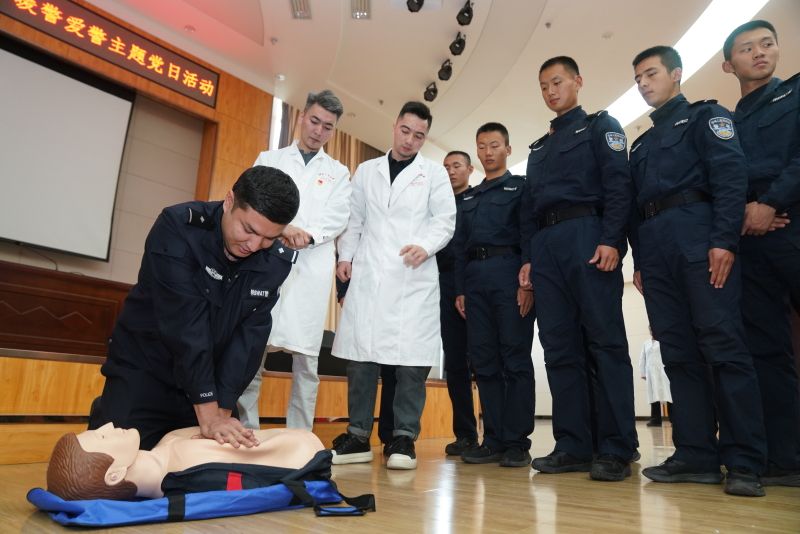 10月22日,新疆医院内科与急诊联合党支部组织综合内科、急诊科、中医康复科12名医护人员前往乌鲁木齐市公安局特警特战支队(监察勤务支队)监察勤务二大队开展“医暖特战心·警铸忠诚魂”主题党日活动,为一线特警队员送上融合急救、基础诊疗与中医特色调理的定制健康服务。