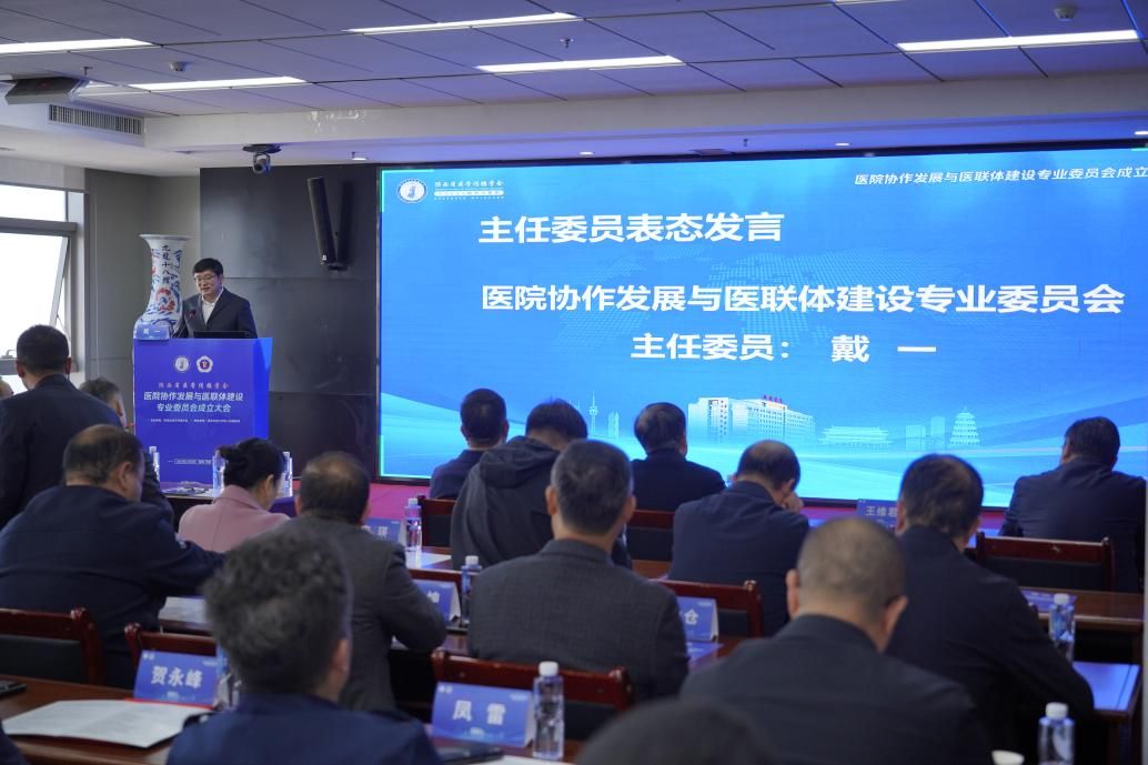 为深入贯彻落实国家关于深化医药卫生体制改革的决策部署,搭建省域各级医疗机构管理经验交流与成果推广平台,培育“懂医疗又懂管理”的复合型人才,开展“医学”与“管理学”融合探索,11月2日,由陕西省医学传播学会主办、西安交大二附院承办的陕西省医学传播学会医院协作发展与医联体建设专业委员会(以下简称“医院协作专委会”)成立大会在西安召开。西安交通大学党委常委、宣传部长、统战部长成进,陕西省医学传播学会会长李宏杰、副会长兼秘书长王维君,西安交通大学管理学院党委书记马晓彬、公管学院院长周忠良、医学部常务副主任雷利利、人文学院党委副书记王劲,一附院副院长韩苏夏,二附院院长张蓬勃、副院长戴一,以及来着全省11个地市、45家医疗机构的主要领导者和管理者共百余人参加成立大会,携手共绘医管融合战略蓝图。与此同时,医院协作专委会选举产生了专委会第一届常务委员、主任委员、副主任委员等,西安交大二附院为主委单位、西安交大二附院副院长戴一当选主任委员。