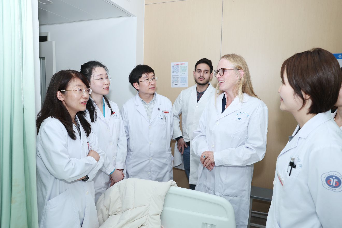 最后,在耿松梅教授、冯程医生、刘彦婷医生、彭斌医生和杜雪珊医生的陪同下,Ulrike Raap教授参观了我科住院部,并对科室现有的难治性大疱性类天疱疮患者进行了查房与诊疗讨论。