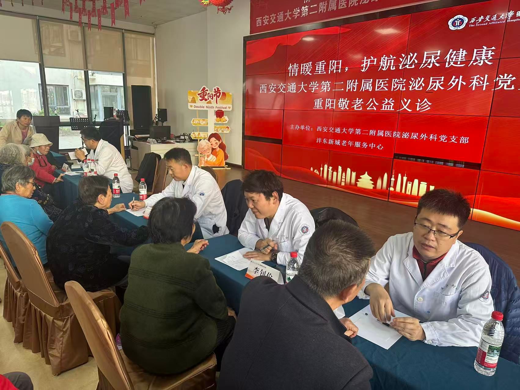 近日,西安交通大学第二附属医院泌尿外科党支部专家团在党支部书记薛力主任的带领下,赴沣东养老中心开展重阳敬老泌尿疾病义诊活动,为老年群体送去专业医疗关怀与节日温暖。