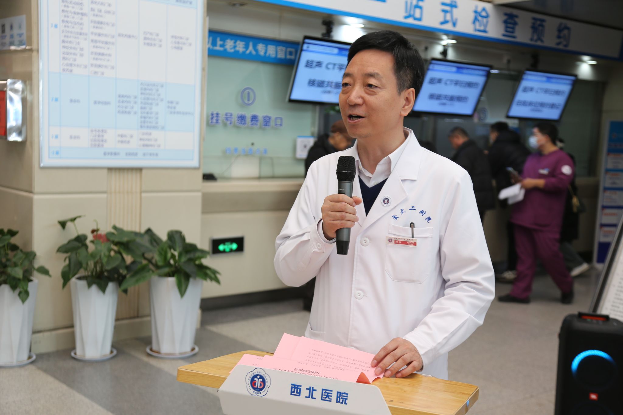 冬阳送暖,聚力同行。2025 年 11 月 19 日上午 11 时,刘艳巧全国名老中医药专家传承工作室挂牌仪式在西安交通大学第二附属医院综合门诊楼一楼大厅隆重举行。全国名老中医药专家刘艳巧教授、西安交通大学第二附属医院种铁副院长、门诊办公室王丽娟主任、学科建设办公室纪泛扑主任、中医科安鹏副主任、工作室负责人党慧敏副主任医师,以及工作室核心成员、医院相关科室同仁等齐聚现场,共同见证这一重要时刻。本次仪式由中医科安鹏副主任主持。