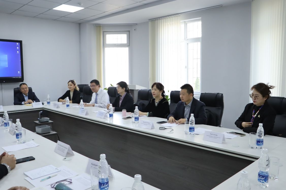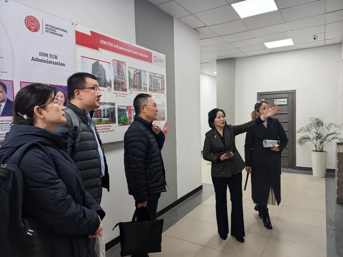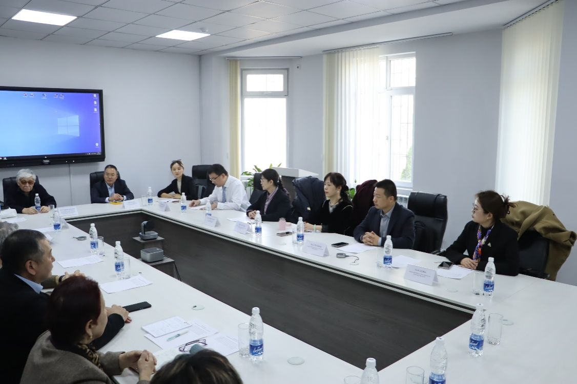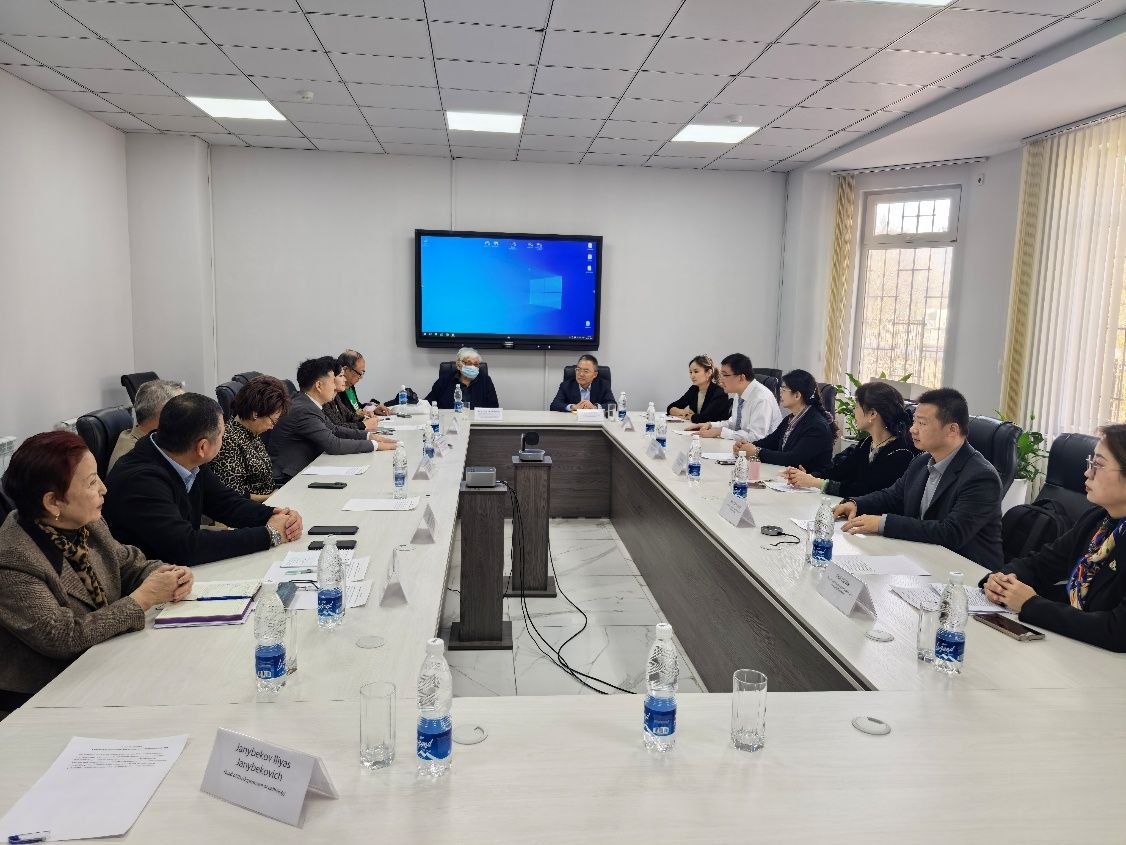 在吉尔吉斯斯坦国际大学医学院举行的专题座谈会上,吉方对代表团的到访表示热烈欢迎,双方开展了富有成效的对接交流。出席会议的吉方代表包括:理事会主席、国际医学院院长、吉尔吉斯斯坦国家科学院院士阿瑟尔别克·艾达拉利耶夫教授,教学与行政事务副院长阿丽娜·穆萨克兹教授,国际事务副院长马克萨特别克·阿纳尔巴耶夫教授,科研事务副院长埃尔米拉·阿克玛托娃教授,教务长古丽米拉·阿西莫娃教授,以及附属楚河州立医院副院长阿尔滕别克·埃斯特别索夫教授等。