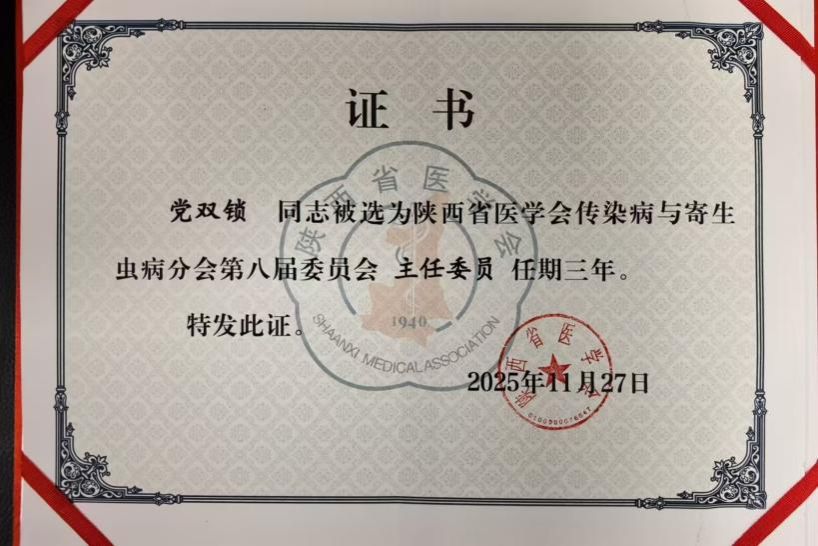 2025年11月27日,陕西省医学会传染病与寄生虫病分会在建国饭店隆重进行换届会议。分会对过去分会工作进行了总结,本专业委员会在全省传染病的防治工作中发挥主要的核心力量,取得了优异成绩。按照换届程序,无记名投票方式选出了新一届主任委员、副主任委员、常委及委员。我院党双锁教授荣任陕西省医学会传染病与寄生虫病分会主任委员(第八届)。分会将在省医学会领导下积极开展工作,为全省传染病的防治事业再创佳绩。