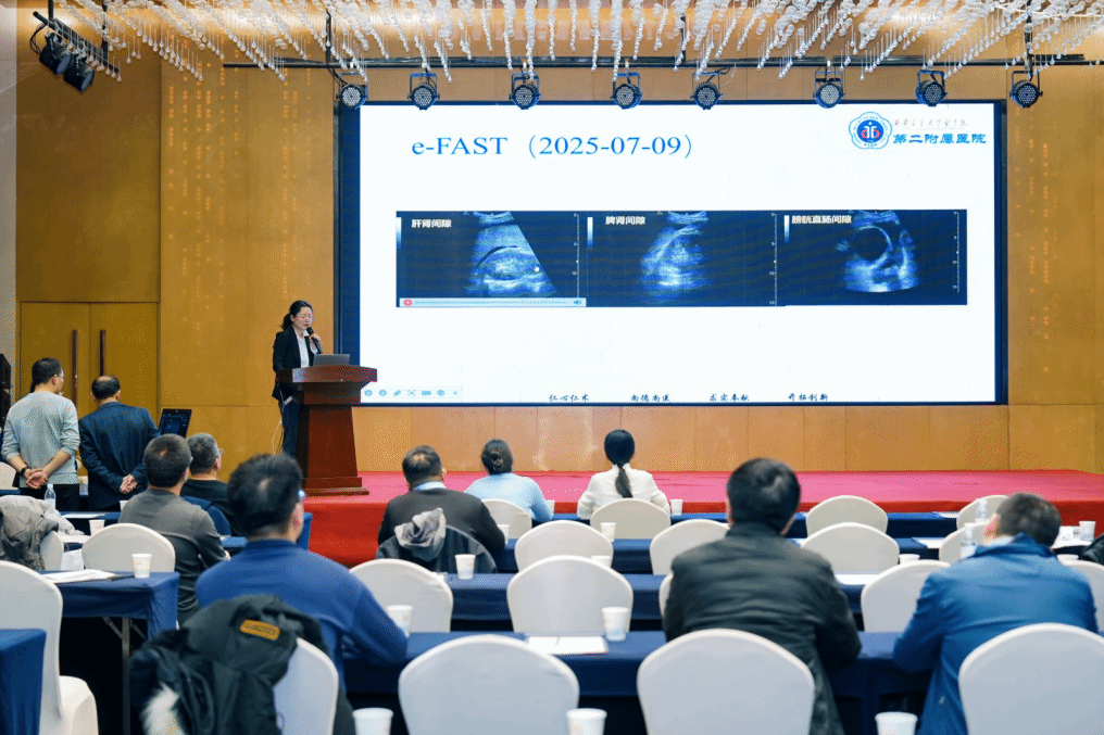 活动开场,陕西省急诊质控中心主任、西安交通大学第二附属医院急诊科主任裴红红教授致辞。随后,急诊科副主任张正良教授以《以超声为眼,化无形为有形 - 床旁超声在急重症中的应用》为题,展开系统阐述。他结合丰富的临床实践,指出床旁超声具有“即时、动态、无创、可重复”的优势,是急诊医师的“第三只眼”。在休克病因鉴别、创伤评估、呼吸衰竭诊断及血流动力学监测等关键环节,发挥着不可替代的作用。张教授强调,床旁超声应用要突破传统影像思维,向“功能导向型超声”转型,如通过测量下腔静脉变异率评估血容量状态、利用肺部超声快速筛查肺水肿与气胸、借助心脏超声判断心功能及心包填塞等,为临床决策提供精准依据。