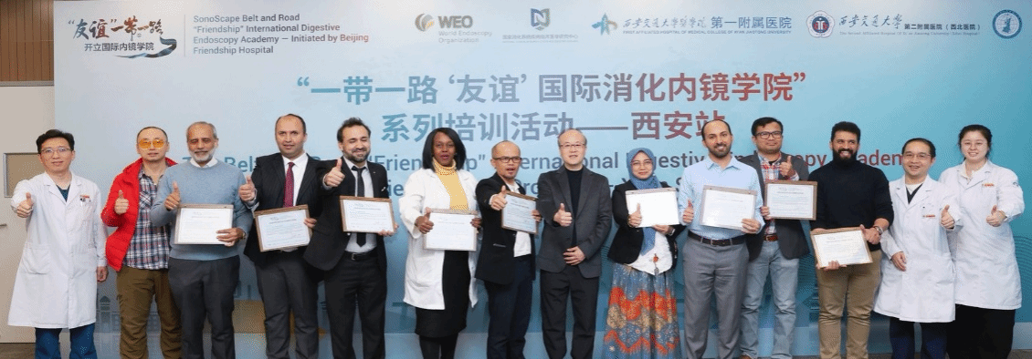 作为践行“一带一路” 倡议、助力 “健康丝绸之路” 建设的重要举措,由北京友谊医院、国家消化系统疾病临床医学研究中心发起的 “一带一路‘友谊’国际消化内镜学院” 系列培训活动近日在西安圆满落幕。我院携手西安交大一附院联合承办此次培训,为中外消化内镜领域搭建起技术交流、经验共享的桥梁。