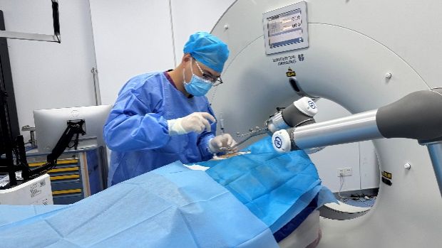近日,在医学影像科张月浪主任的统筹指导下,非血管介入组刘乐、李健鹏医生成功应用穿刺机器人引导,为两名肺结节患者完成了精准穿刺活检术。这标志着我院在CT引导介入诊疗领域迈入智能化、精准化的新阶段。