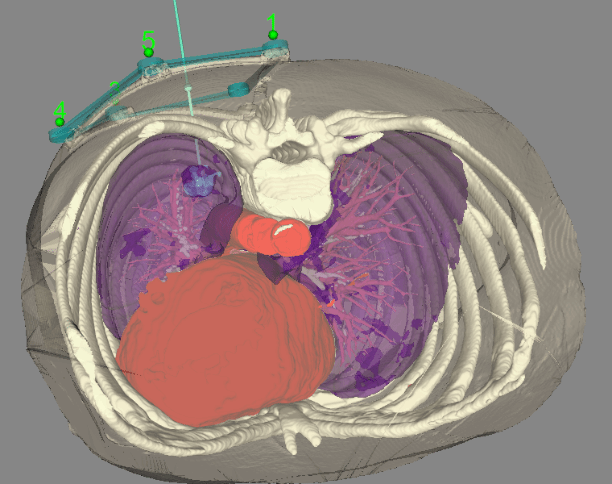 目前,CT引导下的肺肿瘤消融、结节定位及穿刺活检等技术的核心均在于穿刺精度。传统方式高度依赖术者经验,常需多次扫描调针,时间长、辐射多,并发症风险较高。而机器人穿刺导航系统可精准复现规划路径,通过机械臂稳定操作,显著提升首次穿刺成功率,减少血管损伤,缩短手术时间,降低并发症发生率,为提高诊断符合率提供了可靠保障。该系统尤其适用于微小结节、解剖位置特殊(如肋骨遮挡、邻近重要血管及气道)以及下肺病灶的穿刺与消融治疗,有力支持了高难度病灶的精准诊疗。