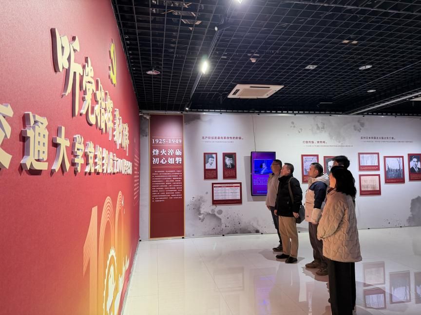 下午16时,支部党员们有序进入展厅。展览以时间为轴,通过丰富的历史图片、文献实物及多媒体展示,系统再现了交通大学党组织自成立以来,在党的领导下走过的百年光辉历程,以及一代代交大人在革命、建设、改革各个历史时期坚守初心、听党指挥、奉献报国的感人故事。