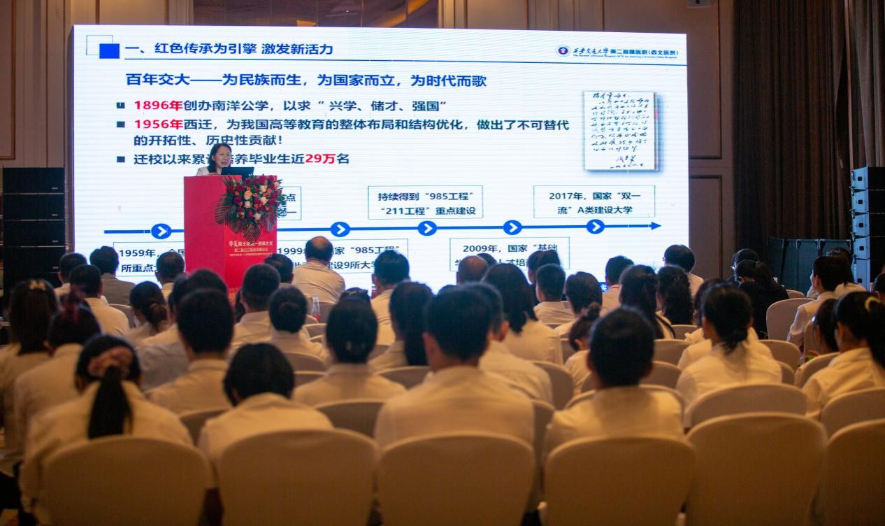 医院落成伊始,就明确了理论学习明方向、党建引领提业务的发展思想,推动党建与医疗、教学、科研与文化建设深度融合,赋能国家区中高质量发展。打造“西安交通大学新疆医院共建社会实践基地”“西安交通大学医学部教学实践基地”“西北高校青年铸牢中华民族共同体意识宣讲联盟宣讲实践基地”等平台,激发医院党员干事创业内生动力。通过“党旗映天山”、“呼吸与共·医路争锋”、“庆华诞·感党恩·忆初心·担使命”“健康新疆·边关万里行”等活动,打造多途径、多形式、多样化文化传承载体,以新的文化力量凝聚人心力量,为区中高质量发展注入文化动力。