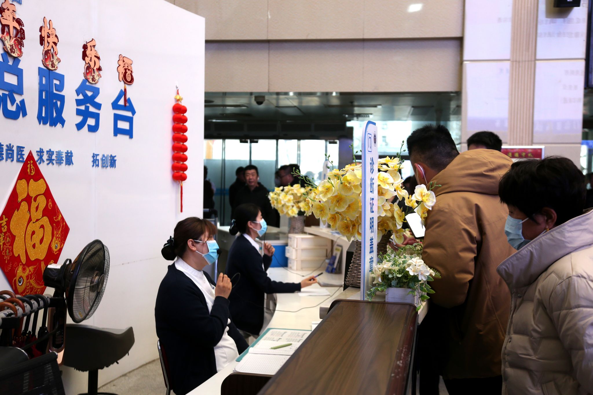 上午七点半,门急诊大厅人流渐增。导诊台前围满了前来咨询的患者和家属。“您别急,今天所有门诊都开了,医生会帮您仔细看的。”“手机预约的患者可以直接在手机上签到。”导医护士们声音略带沙哑,却依然耐心穿梭在人群中,一遍遍解答、一次次指引。她们用细致和热情,为这个乍暖还寒的早晨,注入了第一缕暖意。