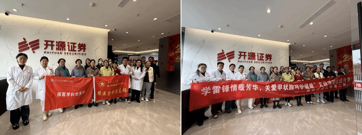 近年来,甲状腺疾病在职场人群中发病率逐年攀升,为普及甲状腺健康知识,筑牢大众健康防线,近日,在医院统一组织下,核医学科党支部、团支部积极响应,联合我院超声医学科,走进开源证券开展“情暖芳华,举办“关爱甲状腺呵护健康”主题义诊活动。