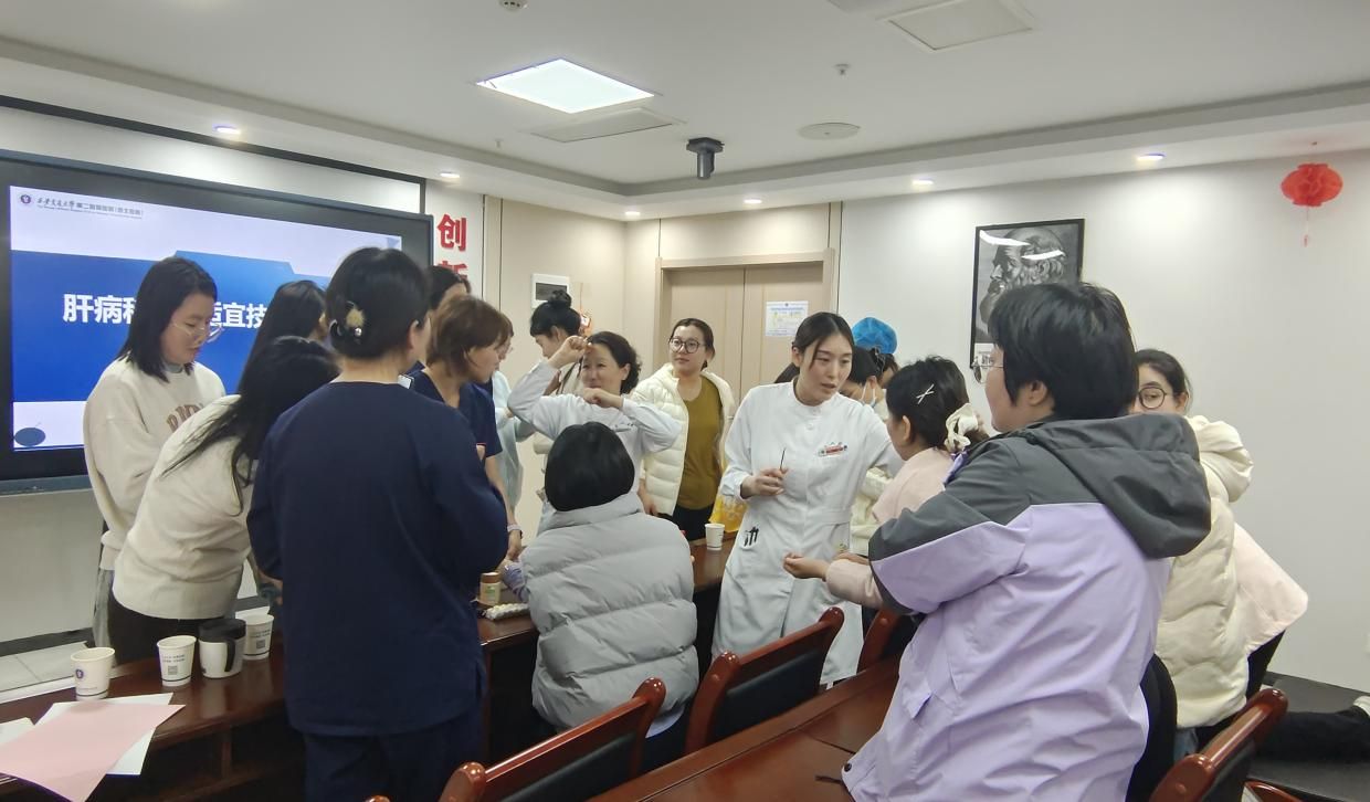 为深入贯彻国家“中西医并重”发展战略及医院关于推进高质量中医药服务的部署要求,推动中医药在肝病诊疗领域的深度融合与创新应用,同时扎实推进中西医协同“旗舰”医院内涵建设,2026年3月27日,我院中医科在吴仲恒副主任、杨海侠护士长的带领下,赴肝病科成功举办了“中西医协同•中医适宜技术进科室”专题宣讲活动。本次宣讲聚焦肝病科临床痛点,系统介绍了安全、有效、便捷的中医适宜技术及经方应用,探讨了中西医协同在肝病防治中的独特优势与科研切入点,共同促进肝病综合诊疗水平的提升。