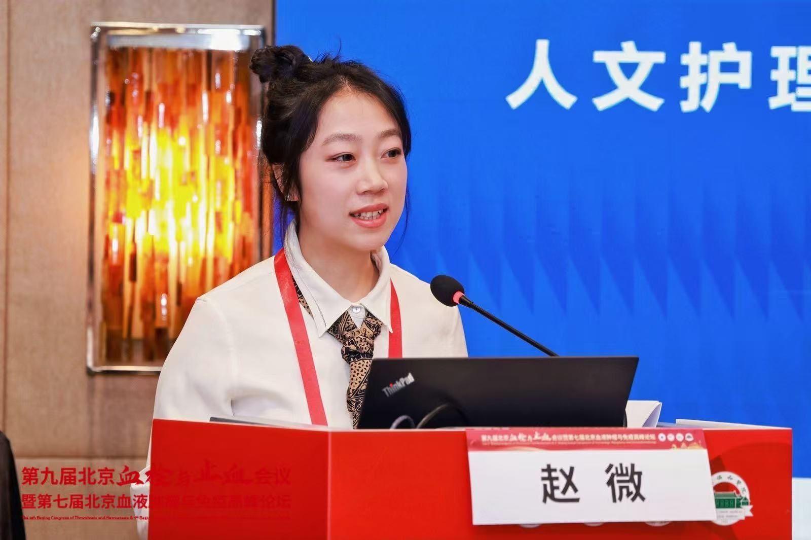 近日,中国免疫学会血液免疫分会第九届北京血栓与止血会议暨第七届北京血液肿瘤与免疫高峰论坛在北京隆重召开,此次会议汇聚了全国血液肿瘤领域顶尖专家、学科带头人及临床骨干精英,聚焦护理学科前沿进展、临床科研创新与实践转化等核心议题,是引领国内护理学科发展方向、搭建学术成果交流的高规格平台。血液内科赵微护士凭借扎实临床实践成果受邀在会议上作专题学术论文发言,在国家级高水平学术舞台上展现了我院护理团队的硬核专业实力与科研素养,进一步提升了我院护理学科在全国的学术影响力。