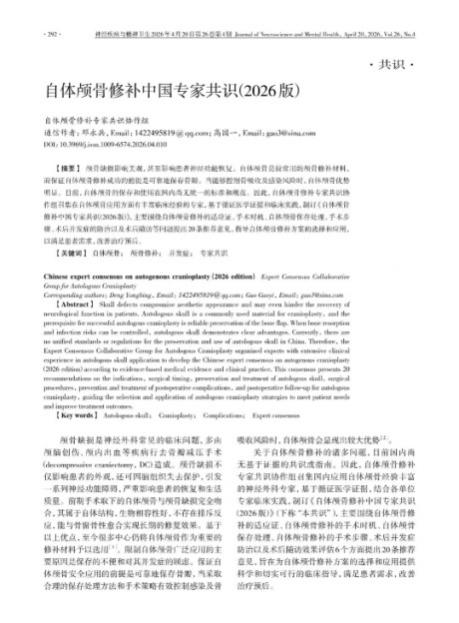 近日,由北京天坛医院在内的国内多家医学中心共同参与的《自体颅骨修补中国专家共识(2026版)》完成编写工作并正式发布。我院作为参编单位之一,神经外科郭振宇副主任医师参与了该共识的讨论与撰写。