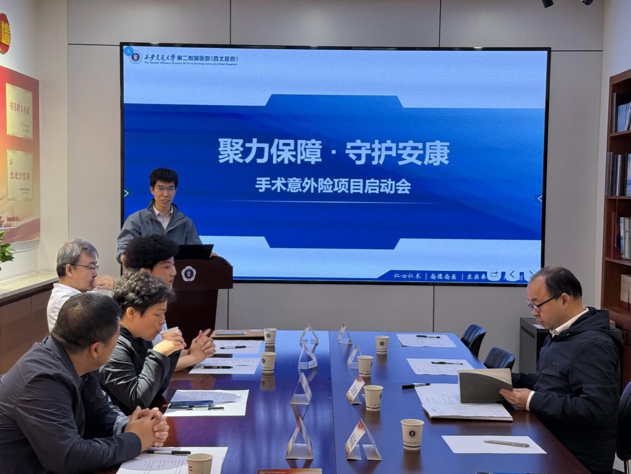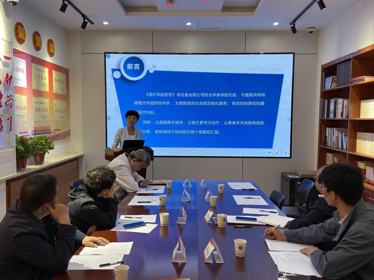 为进一步完善医疗风险分担机制,切实保障医患双方合法权益,构建和谐医患关系,2026年4月20日上午,我院在党员之家成功召开手术意外险项目启动会议。医务部主任王虎清、副主任潘善国,以及神经内科、神经外科、心血管内科、心血管外科等试点科室负责人及代表参加会议。国泰家和保险代理有限公司手术意外险项目副总经理周欣婷携团队参会交流。