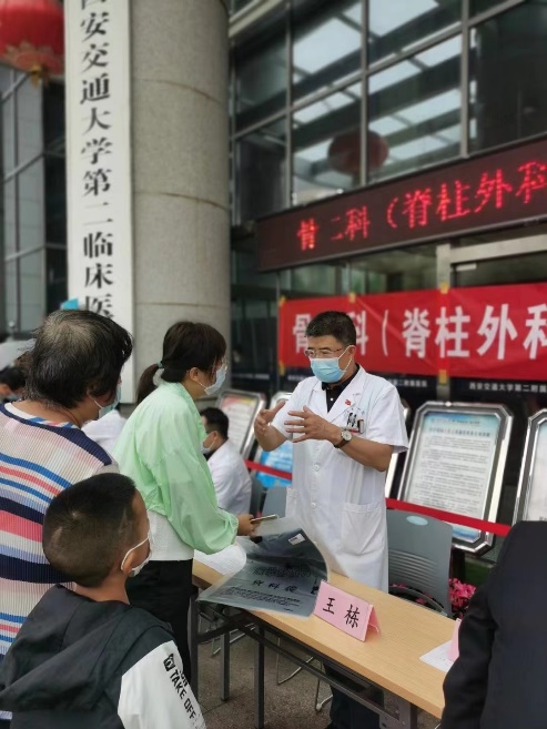 我院骨二科(脊柱外科)是国内最早开展脊柱侧凸矫形的单位之一,在贺西京教授及李浩鹏教授的带领下,先后开展了全脊椎截骨治疗极重度脊柱侧凸、胸腔镜下微创治疗特发性脊柱侧凸、生长棒技术治疗早发性脊柱侧凸等一批国际先进的脊柱畸形矫形手术。本次义诊也是科室多年来以来定期举办的公益活动,目的是普及有关脊柱侧弯的知识,帮助更多脊柱侧弯患儿得到及时、正规、妥善的治疗。