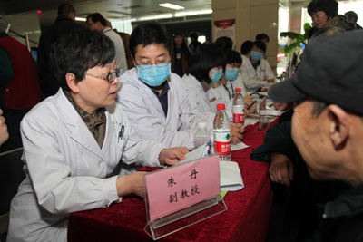 2014年3月13日为第九个世界肾脏日,本次肾脏日的主题是:“防治老年慢性肾病”。为了提高广大患者保护肾脏的意识,我院肾病科在医院门诊大厅一楼举办肾脏日大型义诊活动。此次活动重点是关注慢性肾脏病,关注老年患者,关注人类健康。科室主任桂保松、姚钢炼教授以及马立群、朱丹、葛蘅副教授等15名专家教授和医生护士为来院患者和群众免费诊病、答疑解惑、免费测血压,并发放肾脏病健康手册及防治肾病的相关宣传资料。从早上到中午,前来咨询的患者和群众络绎不绝,有许多有肾病的老患者,更有看到媒体预告和和宣传海报慕名而来的,义诊活动共接待了160多名患者和群众。