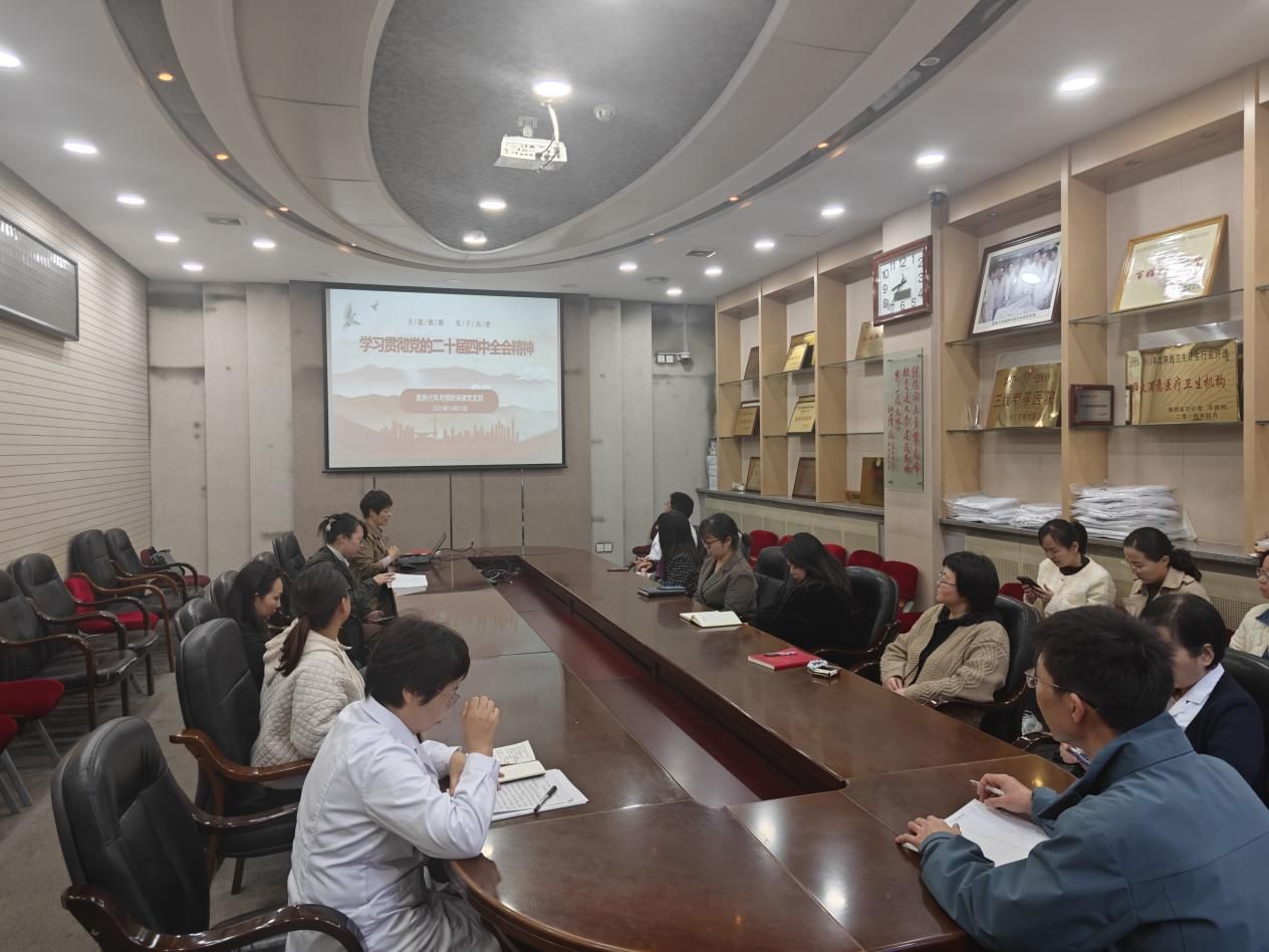 10月31日,为深入贯彻落实党的二十届四中全会精神,深刻领会“十五五”时期的战略任务和重大举措。医务行风与预防保健党支部在第二会议室组织开展“深入贯彻落实党的二十届四中全会精神”为主题的党建学习活动,传达学习党的二十届四中全会精神特别是习近平总书记在全会上所作的工作报告和重要讲话精神,党支部书记王虎清主持,支部全体党员干部参加培训。
