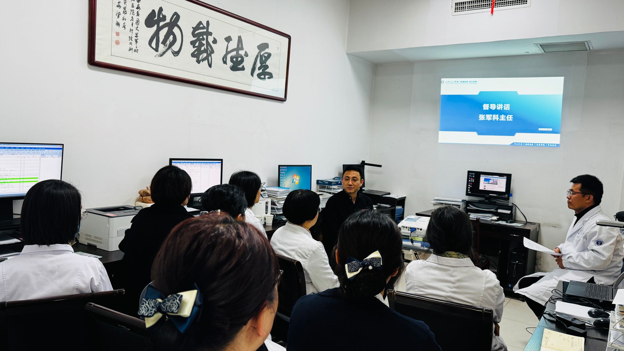 2026年1月28日,老年神经内科党支部在科室医生办公室召开专题组织生活会暨民主评议党员大会,会议以“学习贯彻党的二十届四中全会精神,积极应对老龄化着力提升医疗质量”为核心议题,将理论学习与临床实践深度融合,为科室高质量发展锚定方向、凝聚力量。会议特别邀请院纪委监察室张军科主任莅临指导,支部书记张有友主持会议。