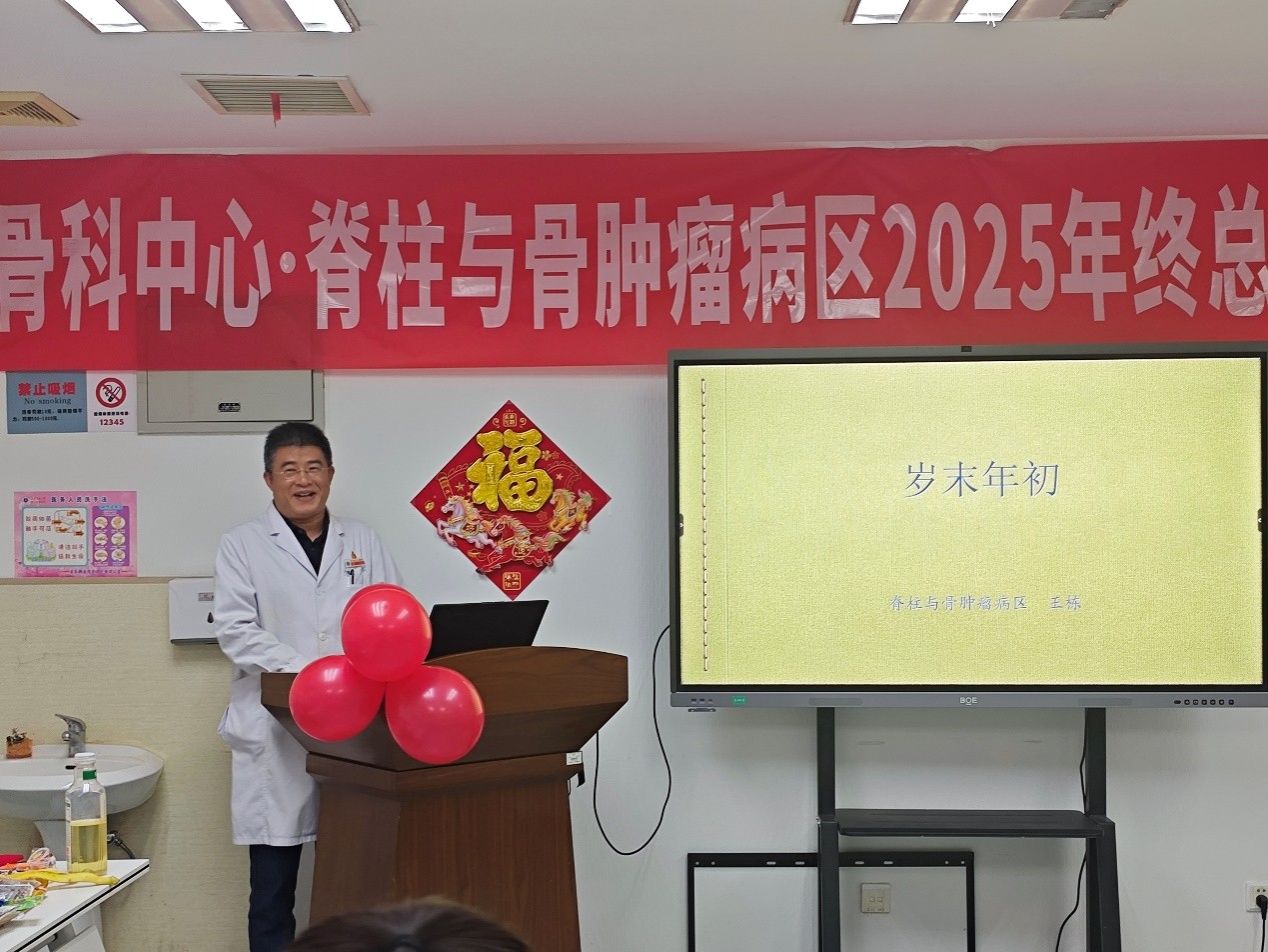 近日,我院骨科中心·脊柱与骨肿瘤病区召开2025年终总结暨2026年迎新会。会议全面回顾了过去一年病区在医疗、护理、科研、教学及学科建设等方面取得的丰硕成果,表彰了年度涌现出的先进个人,并擘画了新一年的发展蓝图。