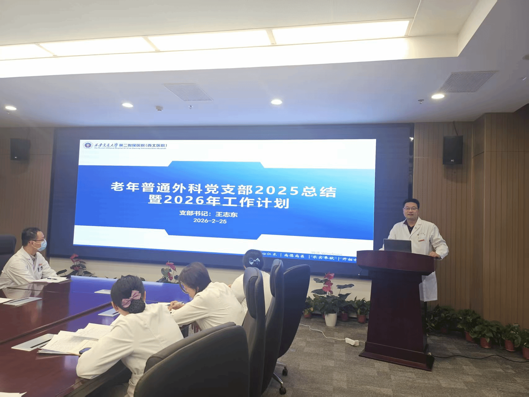 为进一步加强党支部建设,总结回顾过去一年的工作成效,锚定新年度奋斗目标,并严肃党内政治生活,老年普通外科党支部于2月25日下午在西三楼四楼会议室召开了2025年度支部年终总结暨2026年工作计划会,同时召开了组织生活会及2025年度民主评议党员工作。会议由党支部书记王志东主持,全体党员参加了会议。