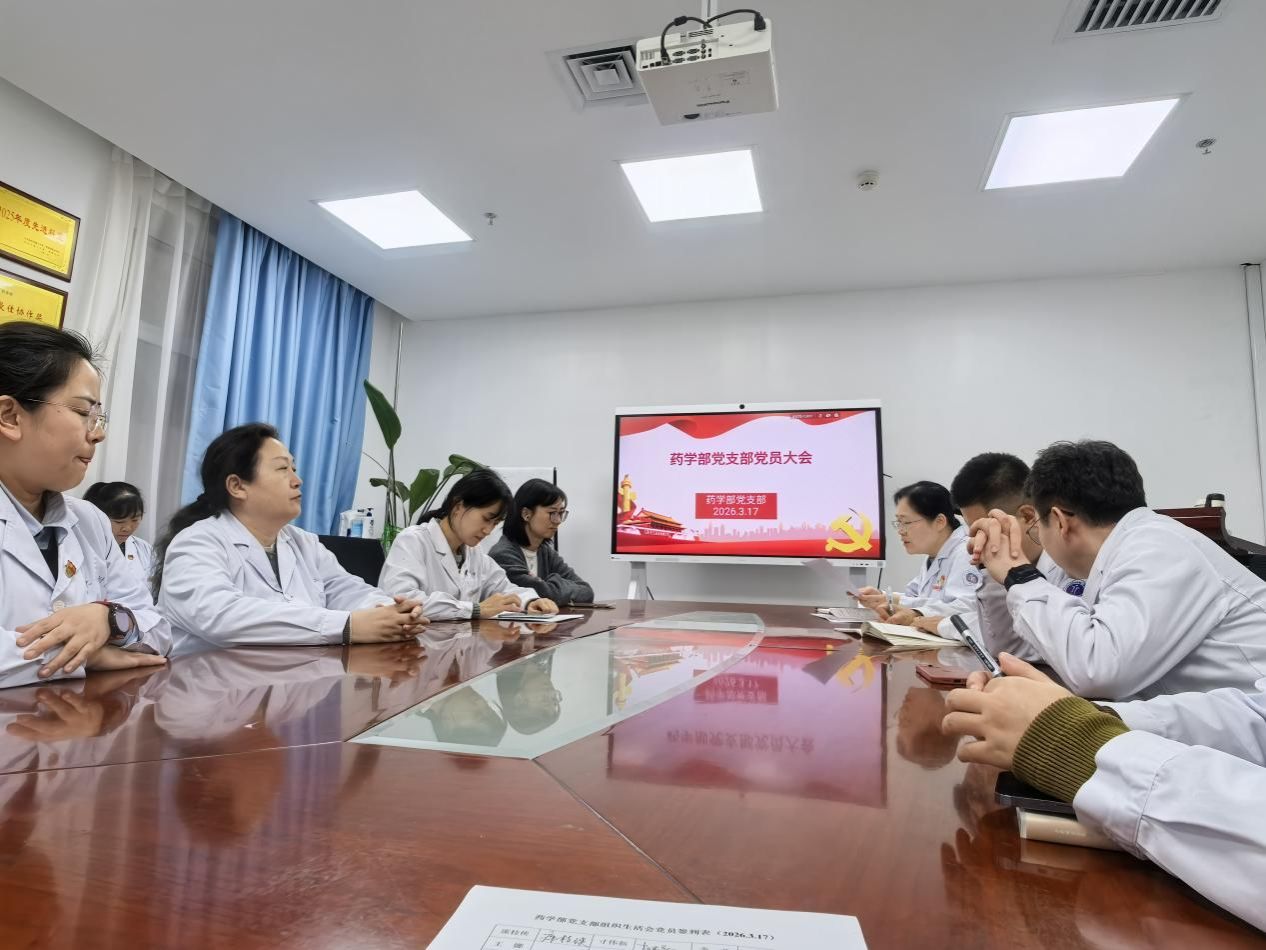 2026年3月17日,药学部党支部组织召开全体党员大会,深入学习贯彻《中共西安交通大学第二附属医院委员会开展树立和践行正确政绩观学习教育实施方案》和《2026年党建强院——“党建+十大项目”(征求建议稿)》两份重要文件,并围绕“党建+十大项目”如何落地药学实际工作展开深入研讨,支部书记王娜同志主持会议。