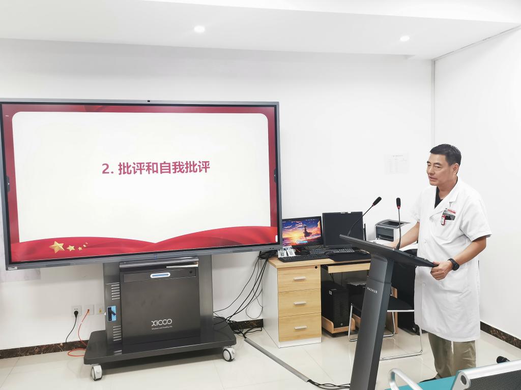 接下来,支部开展批评和自我批评。杨全新书记带头发言,从凝心聚力统一思想入手,强调高度自觉的大局意识,回顾与分析支部工作、理论学习和临床工作等方面存在的问题。随后大家逐一进行批评和自我批评,强调坚定理想信念、自立自强、不断学习的重要性,发展才是硬道理,将自身的工作与奉献融入科室发展、学科建设中去,为科室、为医院的发展贡献自己的力量。最后,杨全新书记介绍并欢迎新入职党员的加入。