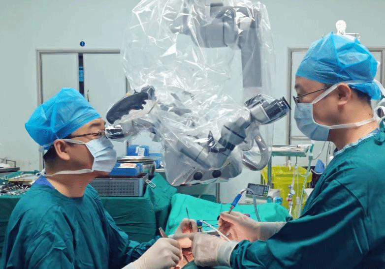 在麻醉科和手术室的协助下,神经外科吕健主任医师、王举波副主任医师为患者施行了可充电可感知迷走神经刺激器植入术,手术顺利,在手术显微镜下将植入电极精准轻柔地固定在左侧颈部迷走神经干,脉冲发生器则植入左侧胸部皮下,术中测试显示电阻通过,设备状态良好,迷走神经传导正常。患者术后顺利康复。