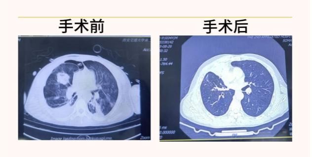 2024年9月26日,患者接受了胸腔镜下右肺上叶癌根治术、右肺中叶部分切除术、脓胸清除术及胸膜剥脱术。术后,患者被转入胸外科病房继续接受治疗,包括抗感染治疗、营养支持以及呼吸功能康复训练。术后,赵先生积极配合各项治疗。得知他的爱人正处于哺乳期,哺乳存在不便,病房医护人员竭尽全力为其提供必要的帮助。最终,赵先生顺利康复,如期出院,与日思夜想的爱人、孩子团聚。