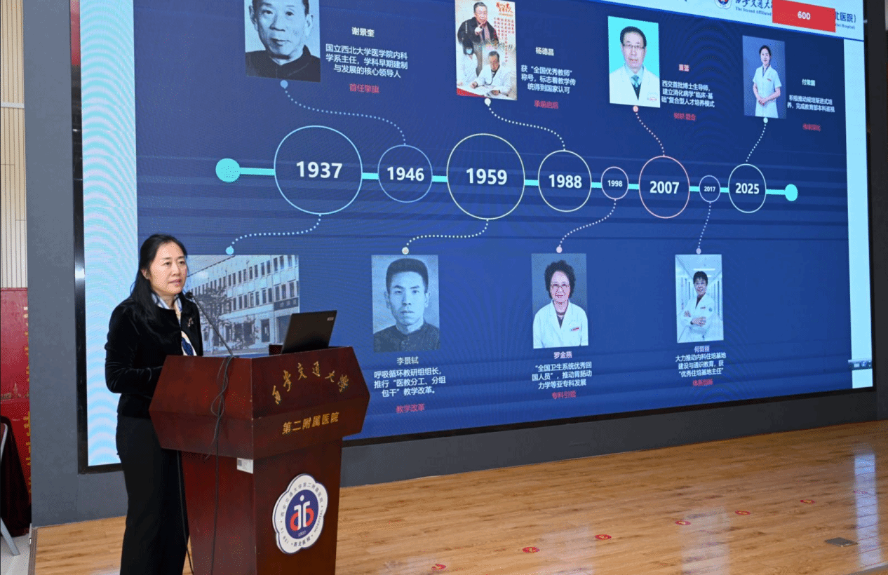在活动的总结环节,内科学系主任付荣国教授作了题为“薪火传医脉,数智启新程”的专题报告。付主任系统回顾了内科学系自创立以来八十八年的辉煌发展历程,从谢景奎、王世臣等老一辈专家的奠基,到如今在CAR-T治疗等尖端领域引领风骚,一代代内科人书写了内科学系的壮丽篇章。