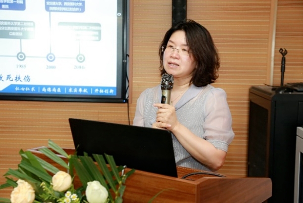 郭卉副院长致辞详细介绍了交大二院的渊源历史,并向沈琳教授及团队、院内各临床科室主任、专家教授、医学同道的到来表示热烈的欢迎。肿瘤内科尹晓然副主任向沈琳教授及团队介绍了科室建立的时间轴以及组织构架。本次会议旨在加强两院间的学术交流与合作,推动我院肿瘤内科学科建设及医疗水平提升。北京大学肿瘤医院作为肿瘤领域的佼佼者,沈琳教授团队的到访无疑为我院肿瘤内科的发展注入了新的活力。