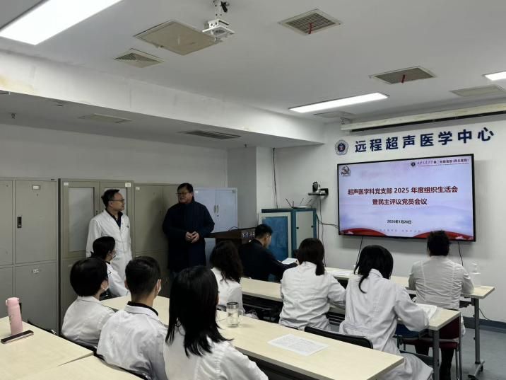 为深入学习贯彻习近平新时代中国特色社会主义思想,巩固拓展党纪学习教育成果,根据院党委《关于召开2025年度党支部组织生活会和开展民主评议党员工作的通知》部署要求,2026年1月22日,超声医学科党支部召开2025年度组织生活会暨民主评议党员会议。医院党委督导组成员、支部全体党员参加会议,会议由党支部书记姜珏主持。