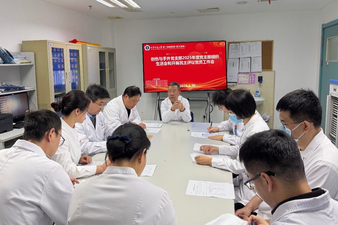 2026年1月30日上午8点30分,骨病与创伤党支部召开2025年度支部组织生活会和开展民主评议党员工作会及2026年第一次主题党会,会议由支部张纯主任主持,院党委委员、骨科中心李浩鹏主任受邀出席,支部全体党员参加会议。